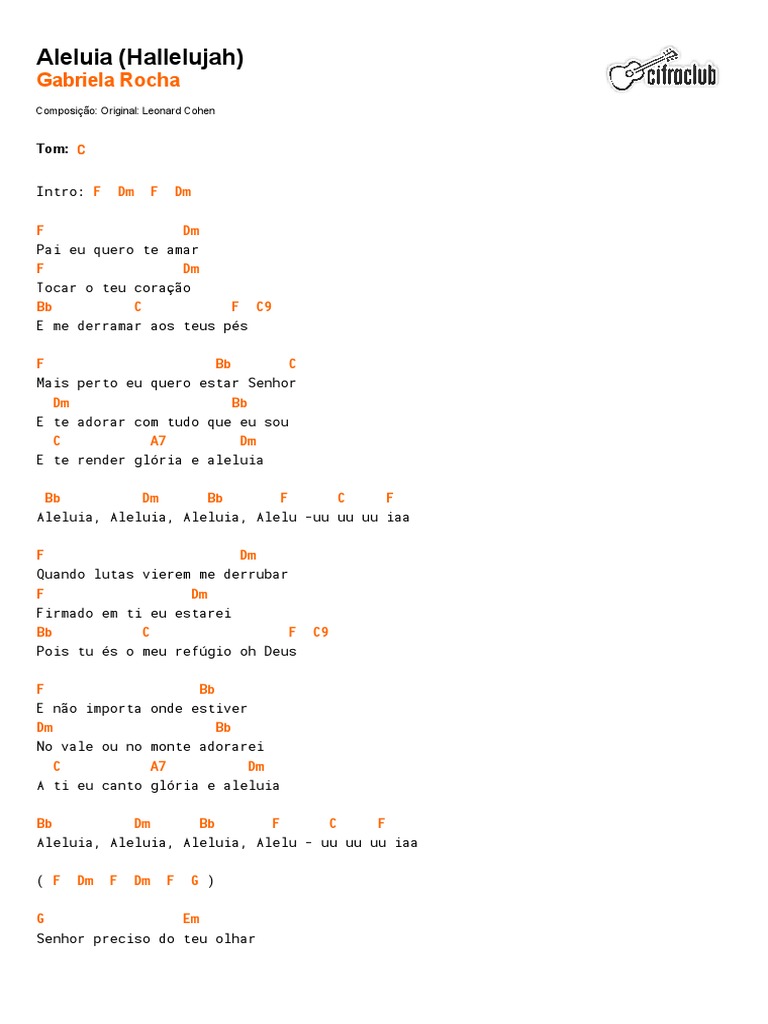 A canção de sua própria autoria, é mais um belíssimo louvor em sua carreira. Contém a mais recente música e letras cristãs de gabriela rocha. Baixar (download) pdf da partituras para sax alto (gospel) da música aleluia (hallelujah) da cantora gospel gabriela rocha gratuito (grátis). Quando lutas vierem me derrubar firmado em ti eu estarei pois tu és o meu refúgio, óh deus. Disponível no google play baixar na app store.